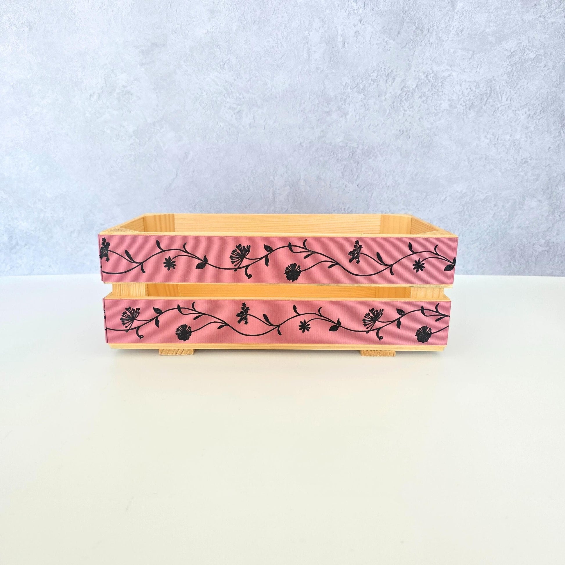 EMPTY RUSTIC DECORATED WOODEN CRATE - GIFT BOX BASKET - MAKE YOUR OWN HAMPER - DIY KIT FOR GIFTS - COLOURS AVAILABLEThese handcrafted wooden crates are available in dusty pink and soft egg blue. Each crate features a delicate black floral vine pattern, carefully embroidered to create a stylish and rustic look. Perfect for organising, gifting, or adding a decorative touch to any space.This kit for gifts is available in 3 options: