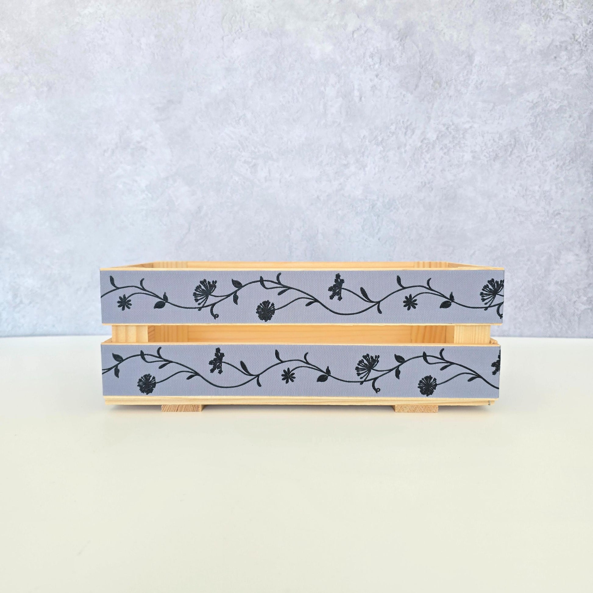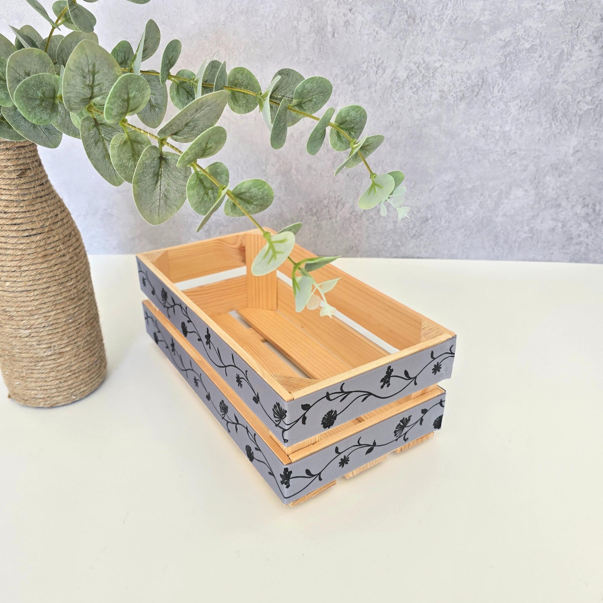 EMPTY RUSTIC DECORATED WOODEN CRATE - GIFT BOX BASKET - MAKE YOUR OWN HAMPER - DIY KIT FOR GIFTS - COLOURS AVAILABLEThese handcrafted wooden crates are available in dusty pink and soft egg blue. Each crate features a delicate black floral vine pattern, carefully embroidered to create a stylish and rustic look. Perfect for organising, gifting, or adding a decorative touch to any space.This kit for gifts is available in 3 options: