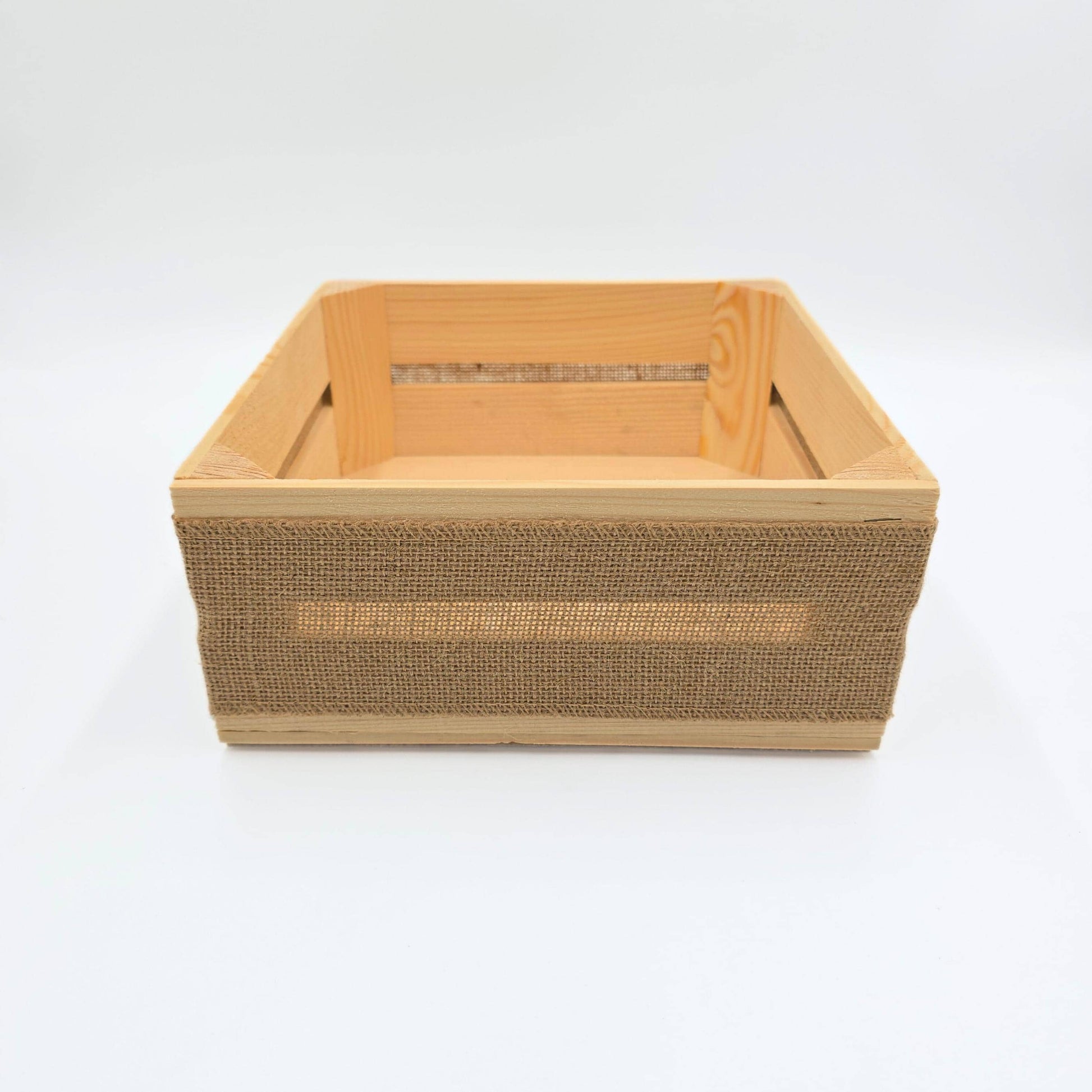 - Crate only - Crate and hamper filling - Full Kit - crate, filling, cellophane (1 metre / 39 inch) and ribbon (1 metre / 39 inch) - please choose the colour of the ribbon from the drop down list. Size: 24 cm x 24 cm x 11 cm (9.44 inch x 9.44 inch x 4.3 inch)Unique and sturdy wooden crate, beautifully decorated with natural hessian fabric and perfect to create your own hamper for any occasion (anniversary, birthday, housewarming, wedding, corporate gifts, Mother's Day, Father's Day, Charity raffle, Christmas hampers, Easter hampers, Valentine's Day, baby shower, retirement, etc.) NOTE: The contents in the picture are not included and are just to give you an idea of what can fit in the crate. THANK YOU FOR YOUR PURCHASE!
