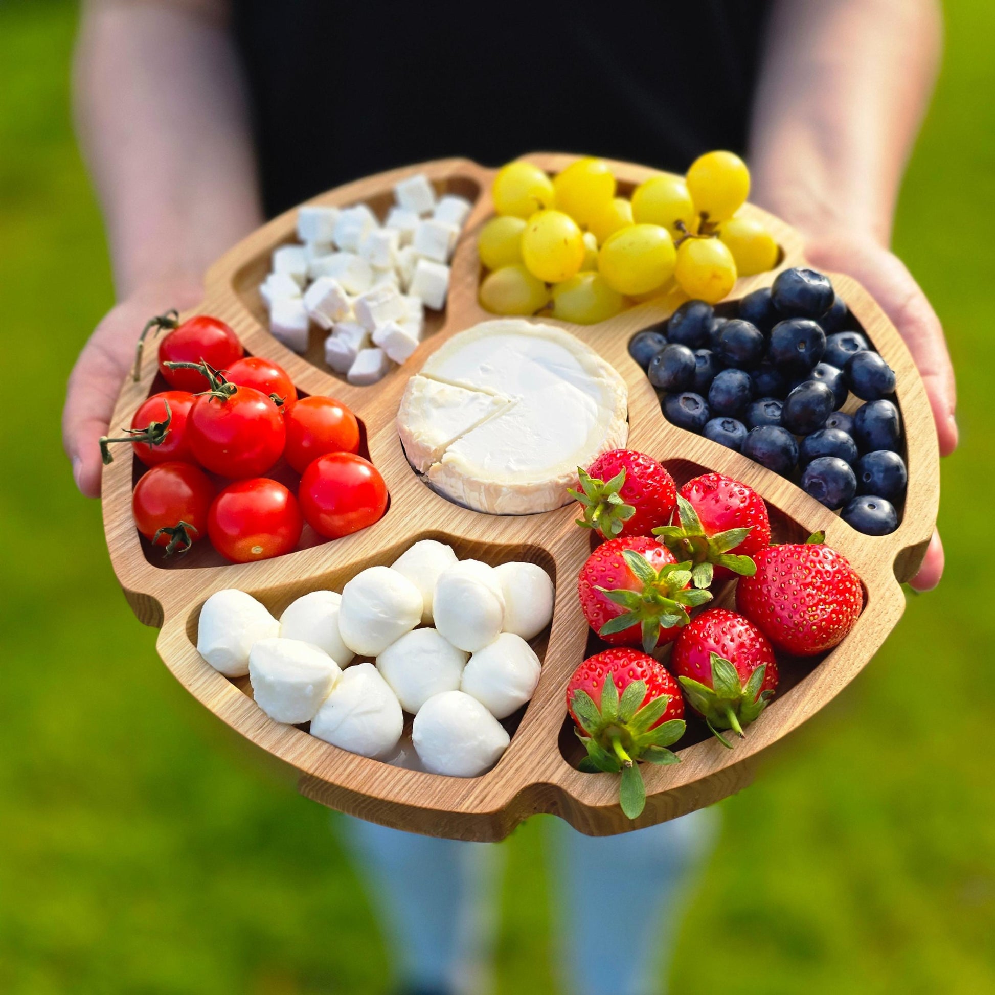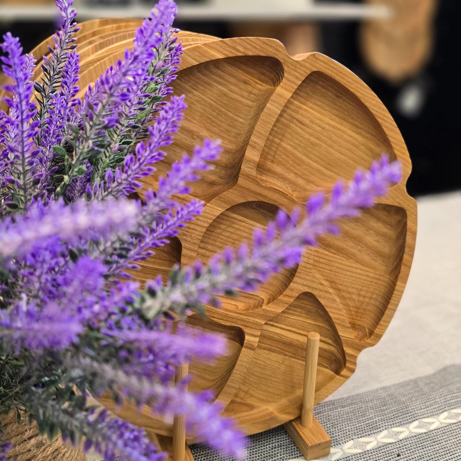 This flower-shaped platter is the perfect gift for a nature lover, as a housewarming gift or for a wedding anniversary, especially wooden anniversary of marriage. Use it as a snacks tray, as a cheeseboard, a vibrant charcuterie board or a unique table centerpiece. With multiple compartments, this divided wooden platter is also perfect as a dips platter, offering countless ways to serve your food and impress your guests!
