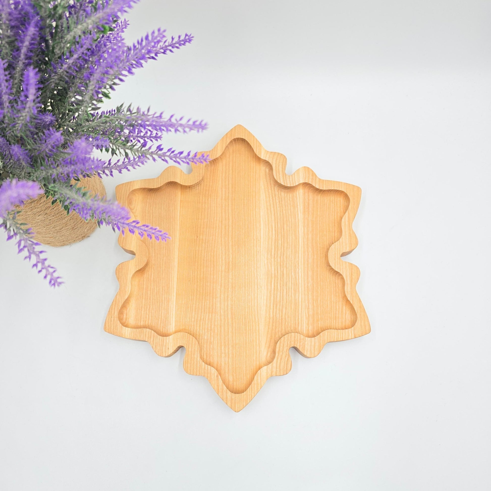 Embrace the festive season with this beautifully handcrafted wooden snowflake grazing board, perfect for serving as a cheeseboard, snack platter, or charcuterie board. Whether used as a Christmas biscuits plate or to present festive treats, this versatile grazing platter doubles as a stunning Christmas table centerpiece. Its unique snowflake design captures the magic of winter, making it an ideal holiday hostess gift, a charming seasonal decor piece, or a thoughtful winter-themed present. Elevate your festive gatherings with this stylish and functional addition to your holiday table.