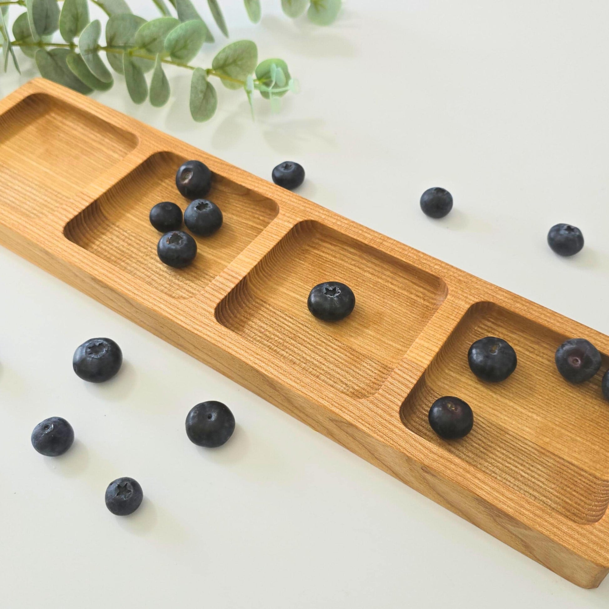 Personalised Long Divided Snacks Tray, Wooden serving tray, Party Food platter