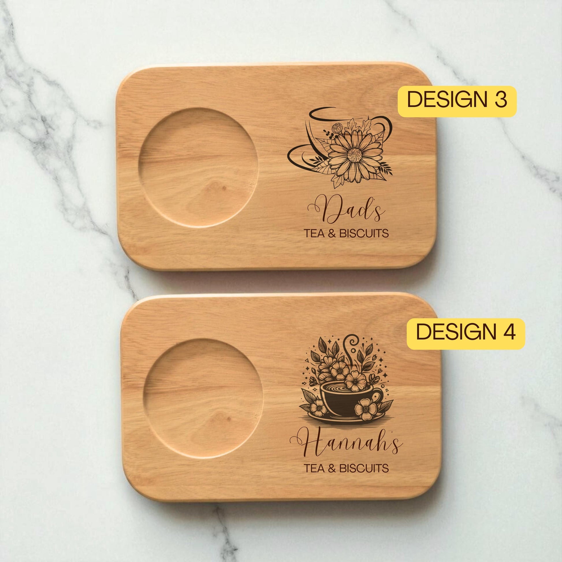 Personalised Wooden Tea and Biscuits Tray - Coffee and Cake Serving Board